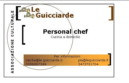 PERSONAL CHEFL'associazione Le Guicciarde, offre la possibilità , su richiesta, di organizzare eventi, anche privati, come con un personal chef in grado di formulare un menù su misura, da realizzare in base al contesto e in linea con i servizi di allestimento offerti. La voglia di stare bene con gli amici, in ogni occasione quotidiana o eccezionale, per il compleanno o per un anniversario di matrimonio o in una semplice cena, si sviluppa soprattutto in casa propria; da qui l'idea di cucinare a casa tua, aiutarti nell'allestimento e fare la spesa con cura e passione, in maniera genuina.INFO